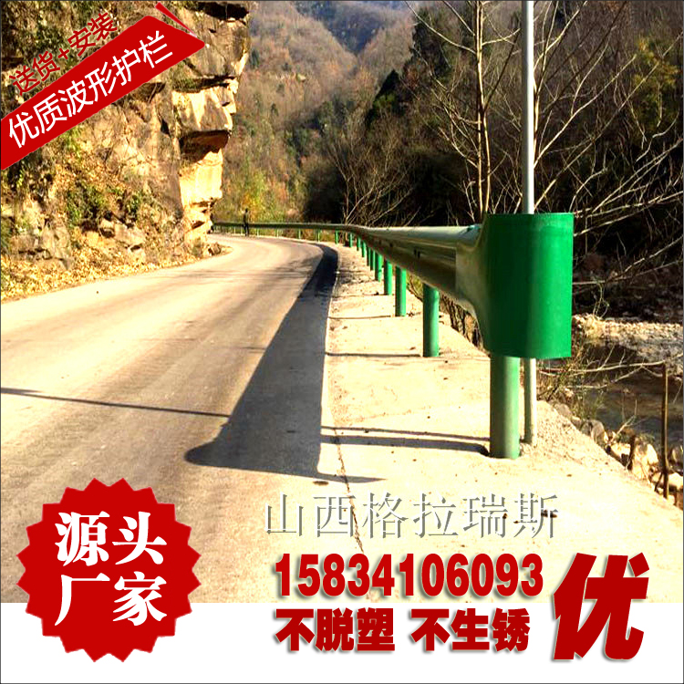 ? ? ? ?波形护栏又被称为波??形板护栏、镀锌板护栏、防撞护栏、W锌钢护栏、道路护栏。其英文名称为corrugated beam barrier是目前国内外公路大桥应用最广泛的安全防护栏。波形护栏属于冷轧,半钢性护栏;一般按设置地点和防撞等级来分类。 按设置地点可以分为路侧护栏和 中央分隔带护栏;按防撞等级可分为A级和S级;S级护栏属于加强型,适用于路侧特别危险的路段使用;A 级用于专用公路 波形梁护栏是半刚性护栏的主要形式,它是一种以波纹状钢护栏板相互拼 接并由主柱支撑的连续结构。