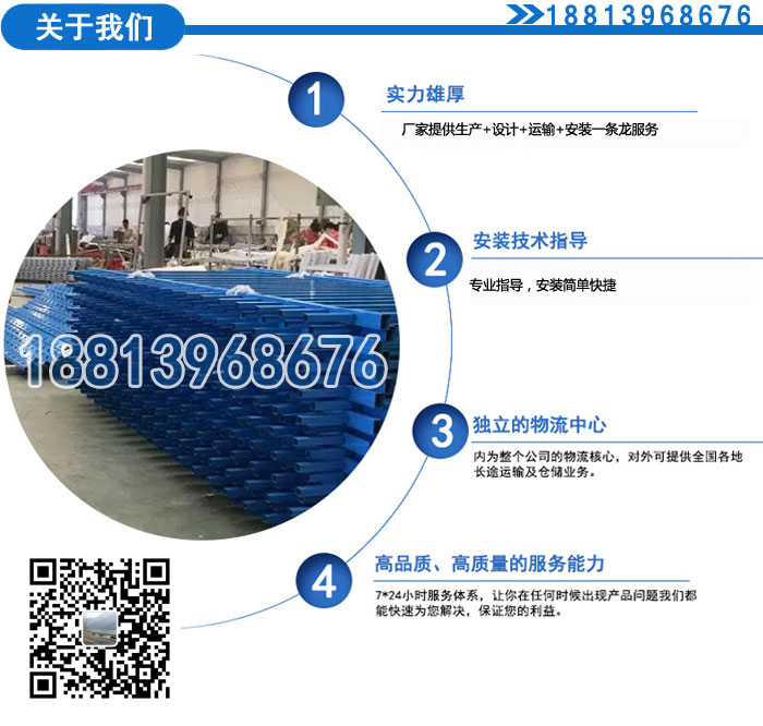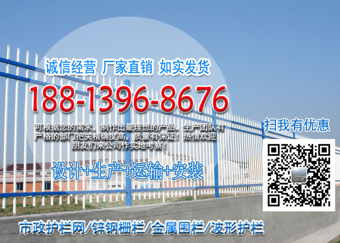 其产品具有造型美观、花色多样,既起到围栏作用,又起到美化作用。本产品具有网格结构简练、美观实用;便于运输,安装不受地形起伏限制;特别是对于山地、坡地、多弯地带适应性极强;价格中等偏低,适合大面积采用。表面处理方式:比较便宜快捷的处理方式:冷镀锌,白色;喷塑,绿色,白色,红色,黑色,黄色等等。比较普遍的处理方式:浸塑,颜色可选:草绿色,墨绿色,白色,黄色,黑色,红色等等。防腐性能效果最好的处理方式:采用热镀锌后浸塑处理,防腐性能终身。