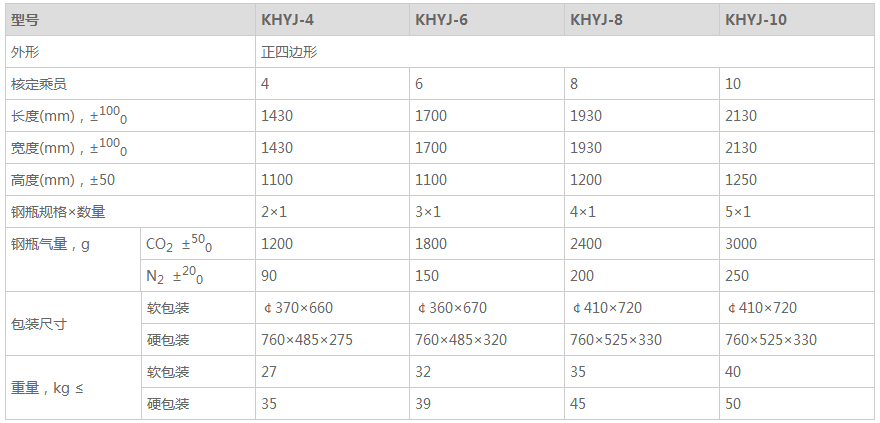 |主要技术参数 型号 KHYF-4 KHYF-6 KHYF-8 KHYF-10 KHYF-12 外形 八边形 八边形 八边形 八边形 八边形 核定乘员 4 6 8 10 12 长度(mm),±1000 1700 1990 2255 2490 2730 宽度(mm),±1000 1700 1990 2255 2490 2730 高度(mm),±50 1200 1250 1400 1400 1400 包装尺寸 软包装 360×710 410×720 410×720 410×820 440×870 硬包装 760×485×360 765×530×370 765×545×380 815×560×390 915×560×370 重量,kg ≤ 软包装 35 41 45 49 / 硬包装 41 49 54 58 65东台市凯航安全装备有限公司专业销售:DF86-5工作救生衣,渔检救生衣,船用救生衣,XT-5585气胀式救生衣,ZHCQY(T)ZS双气囊套头救生衣,气胀式腰带,儿童救生衣,海事工作救生衣,三片式救生衣,HQ-55消防员救生衣,2.5KG救生圈,泡沫救生圈,EVA救生圈,救生圈释放装置,,气胀式救生环,仿韩式抛投器,美式抛投器,ZHPTQ气动式抛投器,HTP-2抛绳设备,救生浮,救生浮具,救生气垫,静水压力释放器,可吊式自扶正抛投式气胀救生筏,自扶正救生筏,救生筏存放桶,10人平台吊笼,船用单锥信号球,安全网,500ML袋装救生饮用水,救生浮漂,海上撤离系统,国际通岸接头,灭火器架,PY8/700泡沫灭火装置,蜗轮蜗杆式消防水炮,PSY40消防炮,大空间智能消防水炮,PL32船用消防炮,船用氮气惰化装置,启动箱,减压阀,减压器,DXZ-1消防员装备,PQ8.C泡沫装置,SSFT-100/65室外消火栓,德式消火栓铜闷盖,中岛式室内消火栓,耐火救生绳,消防水带,气体检测仪,DN65铜制德式三段水枪,卡环式船用水枪,町野式短身水枪,中岛式两用水枪,美式直流水枪,防爆人体静电释放器,DFFD-96-B2救生筏灯,救生衣灯,救生圈灯,DF-6防爆灯,英国狼牌防爆灯,BSW9812救生艇频闪示位灯,CXD-8白昼信号灯,防爆舱顶灯,浸水保温服,DFB-II救生保温服,防爆电加热复合式洗眼,立式洗眼器,挂壁式洗眼器,重型防化服,消防隔热服,新标准引航员软梯,引水员梯,天津金锚玻璃钢梯子,救生艇,橡皮艇,船用油水分离器,新型船用油水分离器,15PPM油污水处理装置,船用生活污水处理装置,信号球,玻璃钢制品,意大利科尔奇充气泵,德国宝华空气压缩机,国产便携式呼吸气瓶充气泵,东发手抬泵,FTQ4.0/13.0消防浮艇泵,船用卧式离心泵,齿轮泵,JBQ6.016.0手抬泵,JBQ5.59.0消防泵,船用柴油机应急消防泵,VSFCG-Q-EX-II防爆电动送风呼吸器,RHZKF9/30正压式消防空气呼吸器,复合碳纤维空气呼吸器瓶,潜水服,TF-12潜水头盔,MZ-300国产潜水头盔,693潜水面罩,美国科比摩根潜水面罩,水下割条,CPT-130C台式磁罗经,CPT-165A磁罗经,MCT-50/60/70磁罗经,CF-3航向分罗经,CF-5数字分罗经,船用膜片式空气气笛YQ-4,YQ-6,船用锌块,船用航海计时仪,船用雾笛,倾斜仪,船用号笛,挡鼠器,风速仪,RR-100船用折叠式雷达反射器,XTL3400救生艇雷达反射器,铜雾钟,劳动牌望远镜,急救药箱,救生手册,船舶呼号旗,不锈钢图桶,抛缆球,堵漏木契,海图圆规,海图分规,MG型号锣,海洋平行尺,测深锤,静水压力释放求测试桶,救生口粮,日光信号镜。风帆牌船用蓄电池,BJ-5声光报警器,KS-1Q直通声力电话机,静电容物位开关液位计,阻旋开关液位计,船用AIS自动识别系统,HAB-120船用AIS网位仪,SH398网位仪,GP-170船用导航仪,顺航SH-730GPS导航仪,飞通导航仪,T-100F三合一导航仪器,国产赛洋H1570导航仪,海洋HD-70CF彩色液晶导航仪,美国佳明GPSMAP580,雷达应答器,AIS搜救应答器,,STR-6000D VHF甚高频对讲机,船用DSC电台,甚高频无线电话,ICOM IC-M200海事对讲机,艾可慕IC-M2300甚高频电台,艾可慕IC-M324,古野甚高频电台,古野FS-5075中高频无线电台,古野卫星C站,船用单边带,DS792液晶测深仪,宁禄DS2008,ES-600S回声测深仪,古野FE-800测深仪,IC-988B渔业电台对讲机,渔船无线电话机,SAILOR 250船载卫星电话,S280C卫星电视天线,古野SC-50卫星罗经,VAP30自动舵系统,船用风速风向仪CZ-5MINI,古野FURUNO自动舵,HM-5817电子海图,JMR6015船用雷达,古野雷达,船用雷达FR-8255,古野1831L,FAX-408气象传真机,VEP8船用无线电示位标,E5示位标,英国OCEAN SIGNAL E100,韩国三荣SEP-500,VRI8示位标检测仪,RAI900舵角指示器,AIS航标应答器,海事对讲机,手持双向无线电话,CY-VH03防爆对讲机,韩国CTW100应急双向无线电话,沙若康CVH-100对讲机,SH-200甚高频电台,新阳升ANAT-200 AIS检测仪,劳伦斯鱼探仪,CVS-126探鱼器,古野FCV-688,海马HE-881双频,海马HE-7300V探鱼机,GQS-206油份浓度计,CYSC-0.5船用油水分离器,YWC舱底油水分离器,新标准污水处理装置,DRG压力水柜,污水处理柜,15PPM舱底水报警装置,SOS紧急救援箱,防爆人体静电释放器。