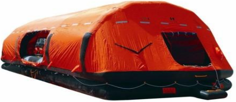 救生筏平时包装存放在玻璃钢存放筒内,救生筏安装在船舷专用筏架上,可将筏直接抛入水中,救生筏既可自动充胀成形,供遇险人员乘坐,如果船舶下沉太快,来不及将筏抛入水中,当船舶沉到水下一定深度时,救生筏架上的静水压力释放器会自动脱钩,释放出救生筏。