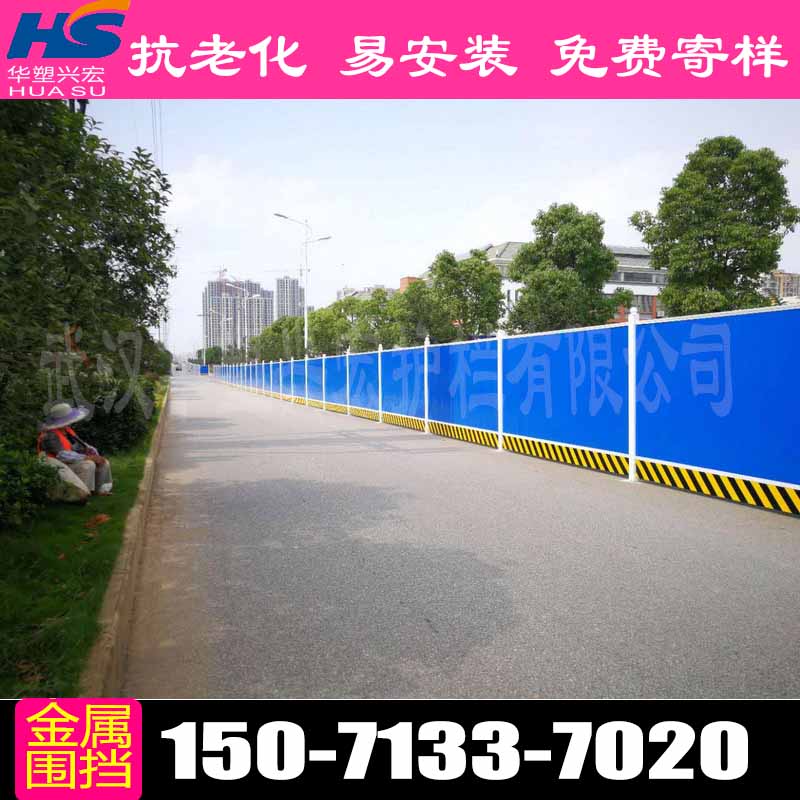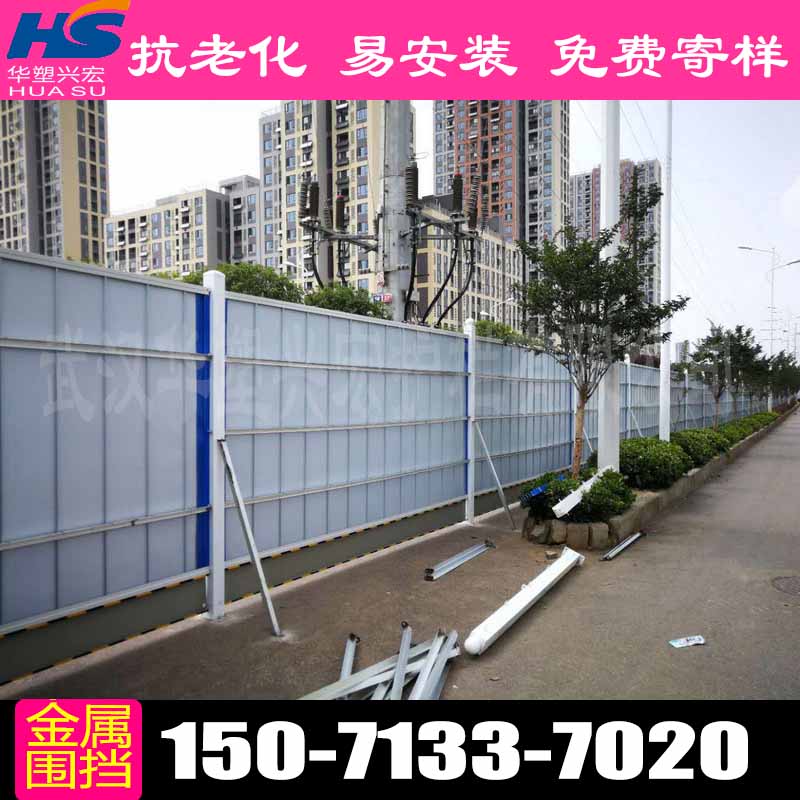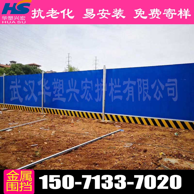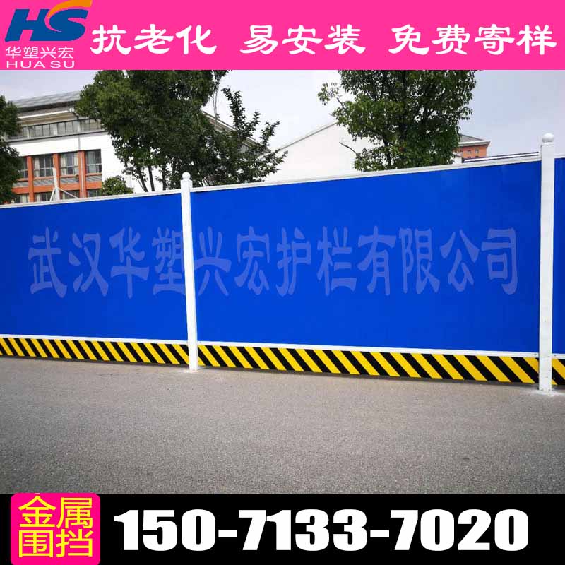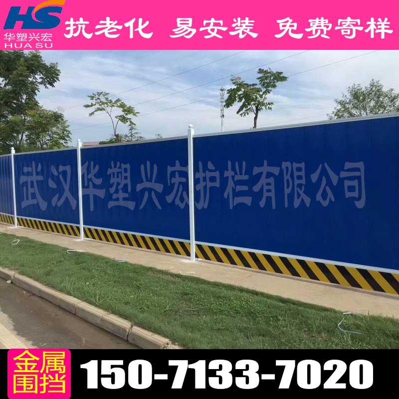1、新型金属围挡安装前通常是土建已形成交付砖砌或砼浇捣的下部基础,护栏可采用机械式胀栓、化学螺检等将立柱钢衬底板固定在下部基础的中心部位作直线均布。