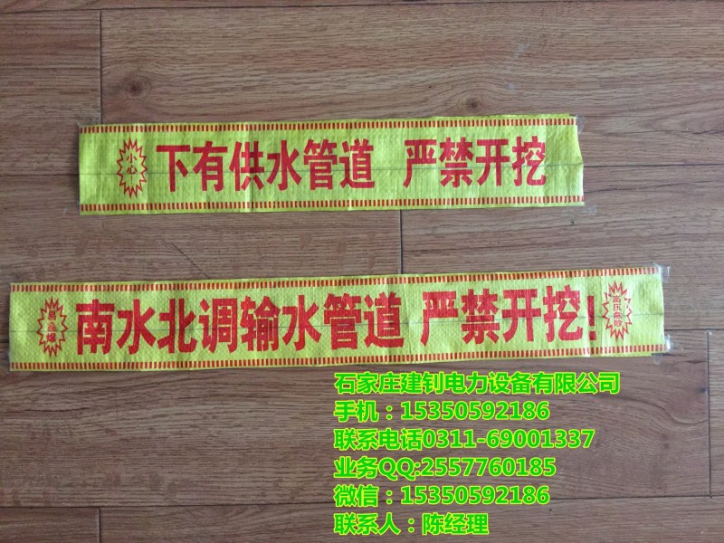 河北建钊电力设备(石家庄)有限公司标示带有两种:一种为普通标示带;另一种为夹金属可探测标示带又称示踪带,(带不锈钢金属标示带),于随着社会经济不断发展,地下管网建设中越来越多地采用PE、PPR、PVC等塑料管,探测仪器根本无法探测到管线走向,夹金属标示带可以解决管线无法探测这一难题,且该产品采用高强度、耐老化的高分子材料,以PE、PP、OPP为主要原料,经防腐处理加工而成,耐腐蚀性能好,色泽鲜艳、醒目,长期铺设在地下50年不腐蚀,不褪色,符合长期埋地质量不变要求。