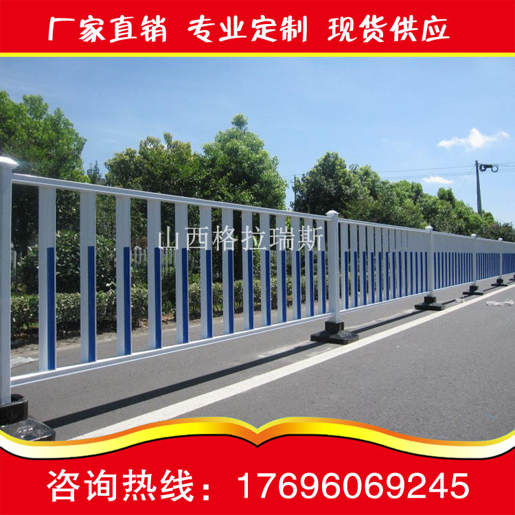 山西格拉瑞斯金属制品有限公司专业生产道路护栏、市政护栏、京式护栏、车道隔离护栏、城市道路护栏、道路围栏、市政交通护栏、蓝白市政护栏、锌钢道路护栏等,可根据客户的需求,专业定制,长期大量供应太原、大同、阳泉、长治、晋城、朔州、晋中、运城、临汾、吕梁等地区,质量保证,价格便宜,送货上门。