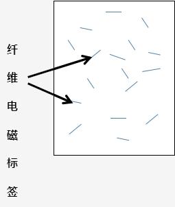 将多根长度10mm,直径0.03mm的纤维形电磁标签,以随机分布的方式植入纸当中,探测其产生的特种电磁信号。