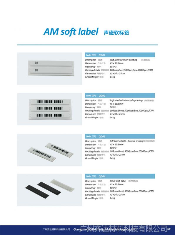 我们以自主创新为宗旨,为市场提供性能卓越、质量稳定的优质产品和综合性的防盗解决方案。目前,公司拥有声磁防盗软标签、防盗硬标签、防盗系统、防盗配件等4大类上百种产品。公司产品远销到全球60多个国家和地区,并且为国内外知名品牌oem加工。