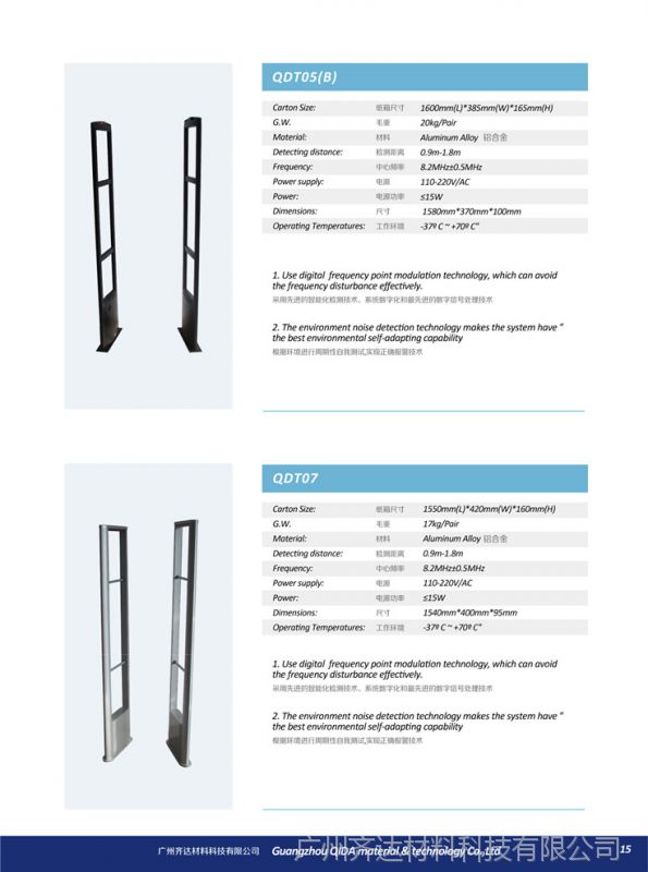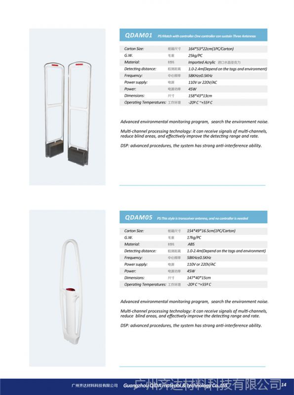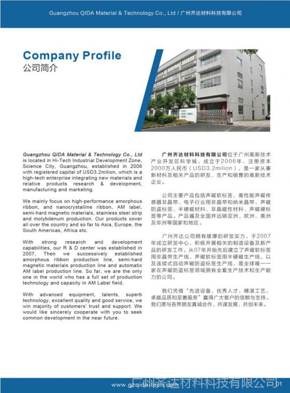 广州齐达材料科技有限公司是全球大型的声磁防盗产品制造商,2006年在中国广州科学城创立,拥有十多年的专业声磁防盗产品制造经验,是全球唯一拥有声磁防盗完整产业链,产品覆盖高性能新材料、防盗芯片、核心组件及***终产品的先进生产型企业。