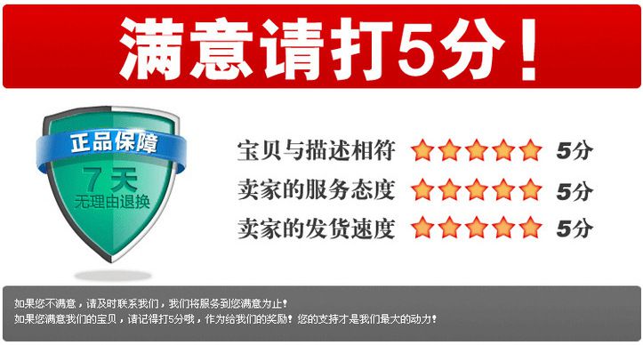 3、 如果您喜欢我们,请给我肯定的五颗星星的好评鼓励。以使我们更有动力。对于5颗星的优质客户,我们会在现货有限的情况下优先发货。对于1-3星评价,然后 又指望继续拿货的人,麻烦绕道,觉得货不好就不要再浪费钱来了。大家相互理解,相互信任,传递正能量,才能合作得愉快!