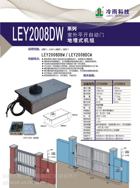 冷雨电动地弹簧共有四个型号:室内为ley2008da,ley2008db,室外为ley2008dbw和ley2008dcw