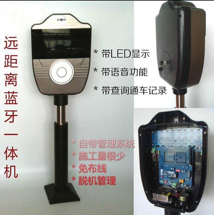 读卡控制一体机,蓝牙远距离读卡,一体机与软件免布线设计,通过管理卡管理。豪华大气,可升降立柱、360度旋转。耐高低温材质,高档pu喷油。双层防水设计,后盖开孔带锁。方便接线维护。前大通窗口透明,有空间,带显示屏,带语音,带下载模块,带电源,主要用于一体机,也可做读卡器使用。软件配套使用。分可乐红、宝马灰。接口以wg26为主、另有wg34/wg42。