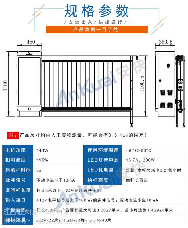●遇阻反弹(压力电波防砸):闸杆在下落过程中,若遇到外力阻挡后,便会自动起杆,减免因失误带
