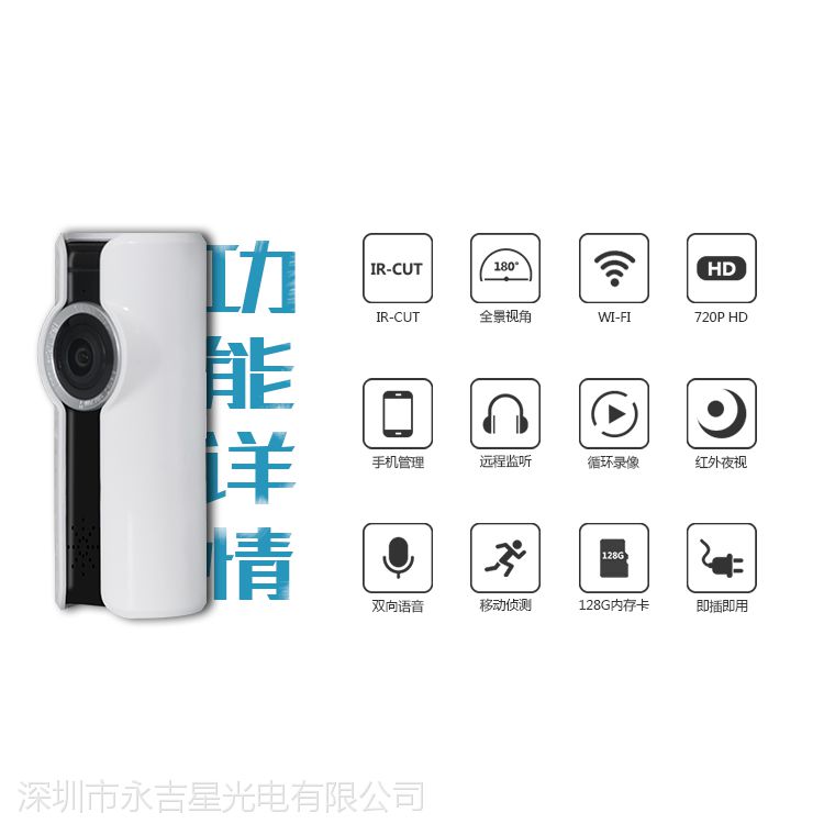 永吉星全景智能监控摄像机 180度手机远程摄像头 智能监控