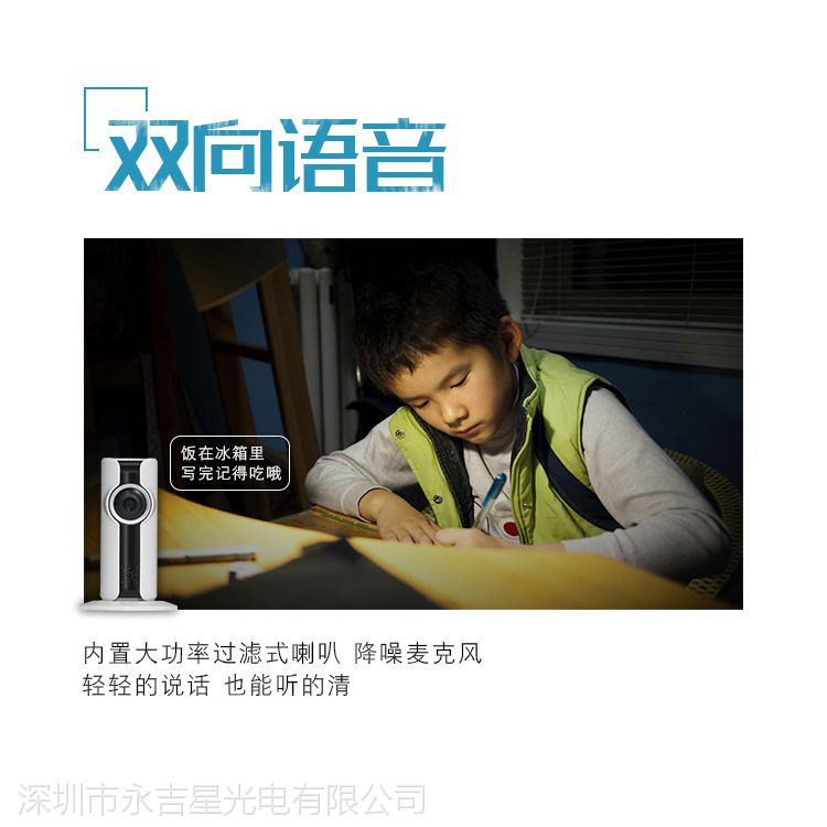 产品特点:手机远程遥控及观看,带语音通话,带移动侦测报警,带各种报警配件写录功能,同时云端异地录像等强大功能,各种场合都能随