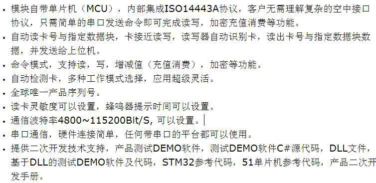 支持卡类型:mifare 1 s50,mifare 1 s70,iso14443a type等