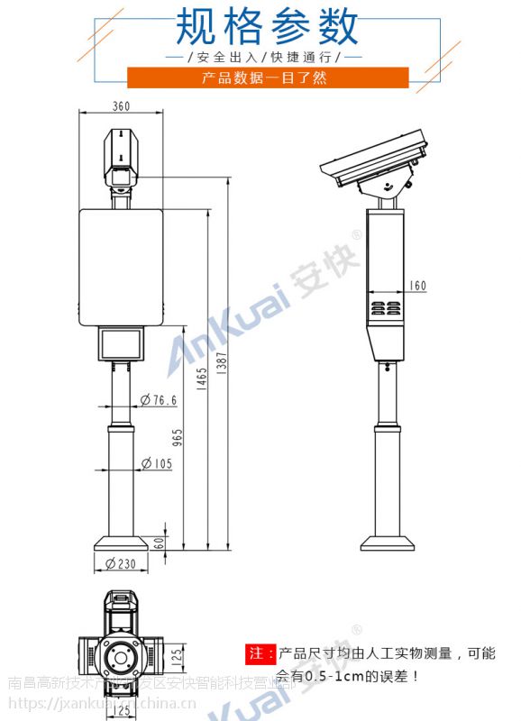 识别、显示、补光一体式设计,安装方便