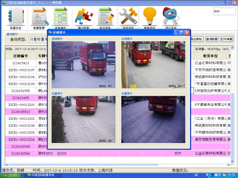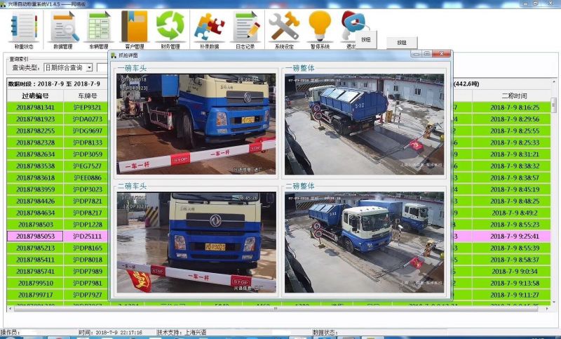 无人值守智能称重系统科学的运用了***新的计算机软硬件技术,采用ic卡门禁一卡通系统、蓝牙或rfid无线射频技术绑定电子车牌,智能道闸系统控制车距,视频实时拍照、录像和传输,语音播报系统智能提醒,配合智能称重软件实现磅房无人值守称重,其中b\s远程查询平台和领导分析平台集成了强大的财务、自定义报表、数据分析、汇总和打印等功能,能够远程查询过磅单显示称重现场自动抓拍的图片,远程实时掌握库存状态,中控室远程实时动态显示视频信息,无人值守系统能自动控制命令的执行,智能分析、界面引导式操作,使得用户操作非常简单直观。