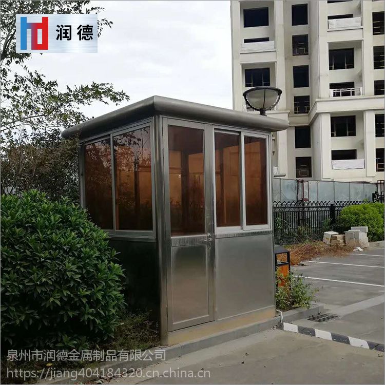 4、不锈钢方形岗亭成品现货门卫酒店值班保安岗亭所有岗亭留有空调及其它电器电源插座,方便使用。可根据您的特殊要求设计制造出不同款式的岗亭。
