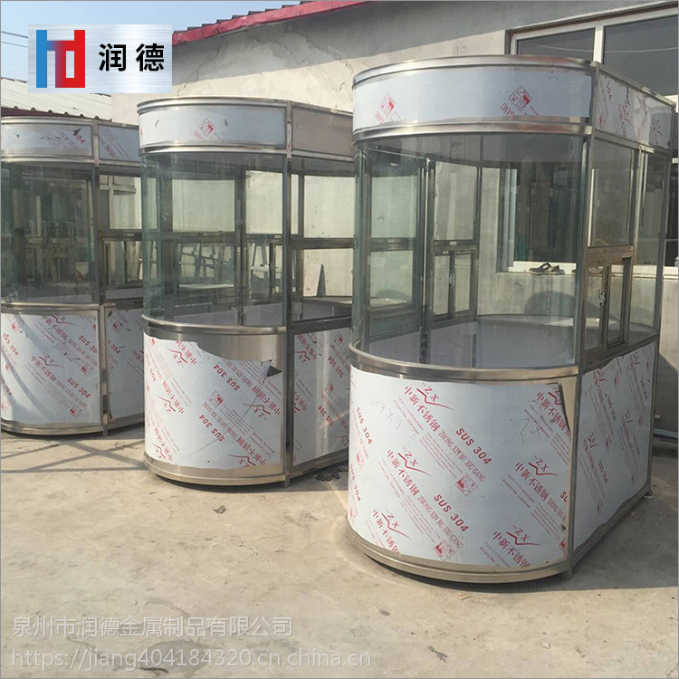 2、不锈钢方形岗亭成品现货门卫酒店值班保安岗亭主题骨架采用优质不锈钢整体焊接而成,强度高,抗风压。