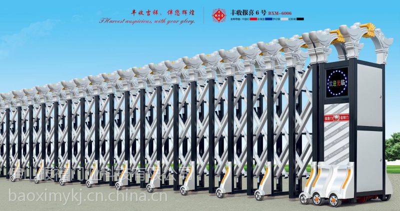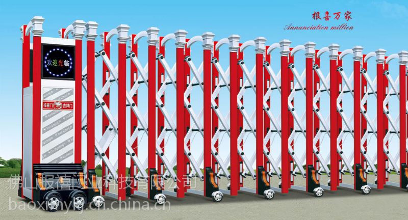 供应山西电动门、山西伸缩门、山西电动伸缩门【电动伸缩门订购热线:或李先生:】佛山市报禧科技有限公司是一家集研发,生产,销售,服务一体化的专业闸门企业。主打产品为电动伸缩门、卡智能停车场管理系统、智能悬浮门、道闸、岗亭、旗杆、围栏、交通护栏等大系列余种具有自主知识产权的高科技产品,拥有多项国家专利和国外专利。企业一直坚持以人为本,不断创新的理念,不断引进国外先进人才和和技术,使产品性能稳定,外型时尚,为门闸市场提供了数之不尽的精品。“”