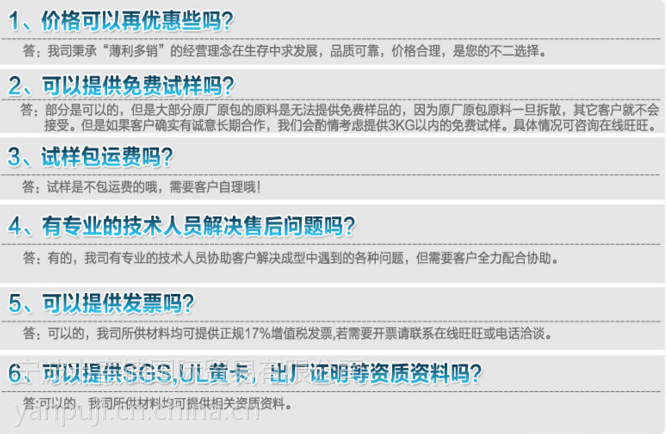 原料到厂后,请不要直接打开原料包装,应先检查原料外包装是否损坏和型号是否正确,如有不对请马上和本公司联系。本公司所售原料均为原厂原包。可提供(coa sids sgs soc ul黄卡)和物性表,可开17%的增值税发票