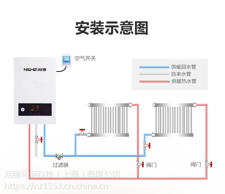 半导体锅炉具备 正真水电分离:发热元ptc高温陶瓷片不直接接触水,通过含铝量达80的合金管道作为传导介质。使用安 全:半导体锅炉加热管内部发热体只发热、不发光,即使放在干纸片中不会出现明火和触电等危险。温控器失灵和无水导致干烧,此时发热元ptc阻值急剧上升,从而切断电源避免损害设备。经久耐用:ptc陶瓷片属于瓷类,发热稳定、不易老化正常实用8年10年没问题。不结水垢:加热管属于低温加热温度在(250度300度)管道内壁光滑、平整、加上过流式加热技术,因此很难形成水垢。特效率高达99.7:没有光耗、导热体接触水面积大,热量吸收快。功率自调随着温度上升下降改变功率大小实现节能。防腐蚀防漏水:管道内壁经过抗氧化处理和涂覆绝缘纳米抗氧化层,承受水压10公斤以上,绝缘测试3500伏。尼臻锅炉体积小采用壁挂安装方式,安装方便。