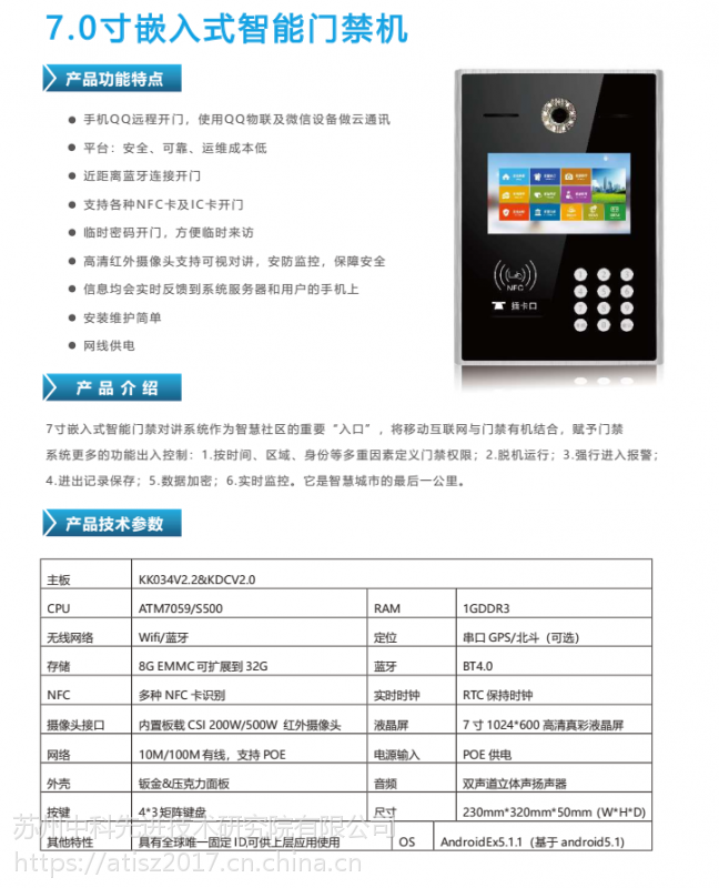 产品种类智能家居门禁机