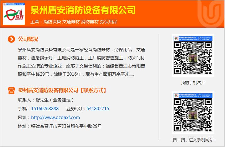 泉州君安消防经营部生产的主要产品有:消防工程施工消防维保喷淋管道安装灭火器维修、室内外地下消火栓、防火卷帘门、防火门、通风设备、防火阀、机电产品、消防箱、消防栓、消防水泵接合器、消防水枪、消防接口、自救式消防软管卷盘、消火栓箱、湿式报j警阀、高压二氧化碳自动灭火系统、七fo丙烷自动灭火系统等消防产品、回收二手消防设备、安保器材销售、劳保用品零售、道路交通用品设施等一站式服务。(依法须经批准的项目,经相关部门批准后方可开展经营活动),我们有好的产品和精英销售和技术团队,我公司属于泉州防火设备公司行业, 更多相关欢迎来电来访。
