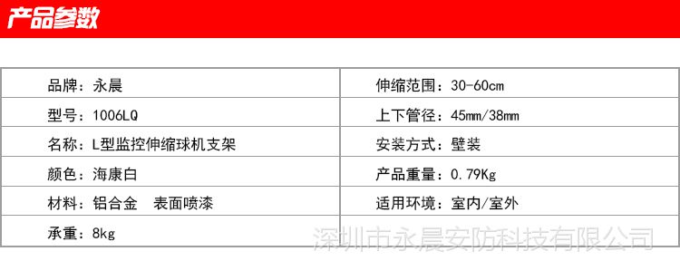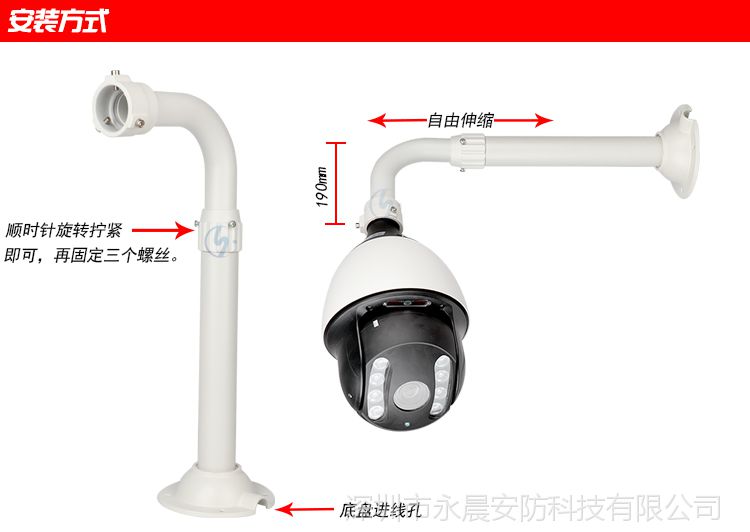 可调节海康大华高速球匀速球网络球机壁装支架l型30-60伸缩支架