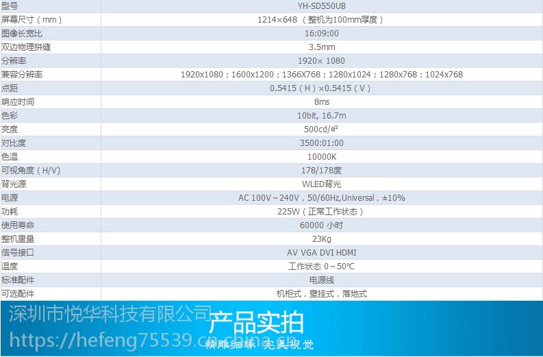 悦华科技55寸三星液晶拼接屏超窄边安防监控电视拼接墙