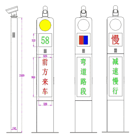 弯道预警系统由前面雷达检测器、后端一体化车辆预警装置组成,其中后端一体化车辆预警