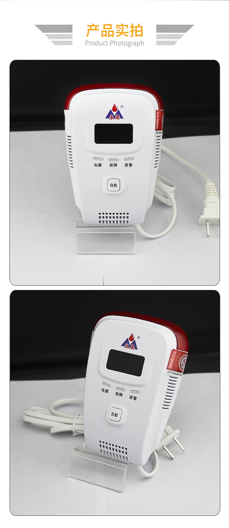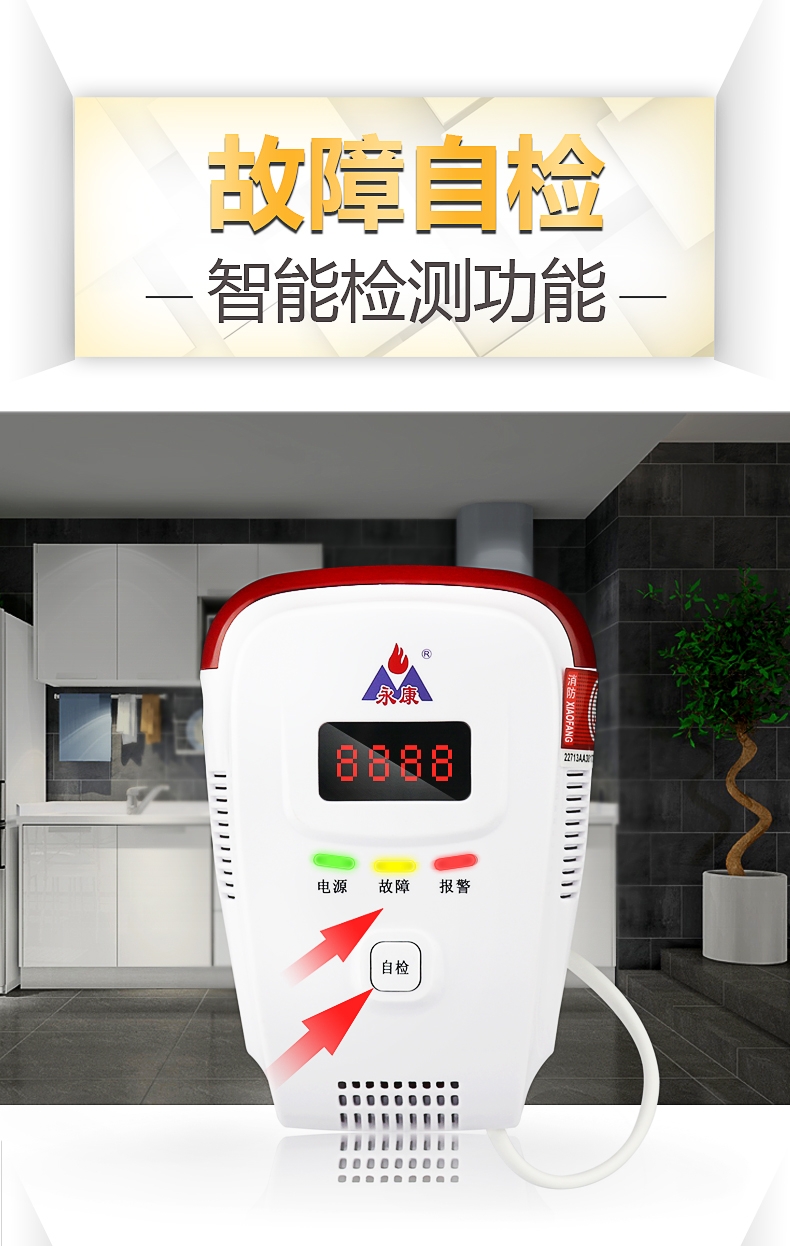 b. 报警器故障提示功能,传感器损坏自动提示,以便用户更换和维修,防止了不报。