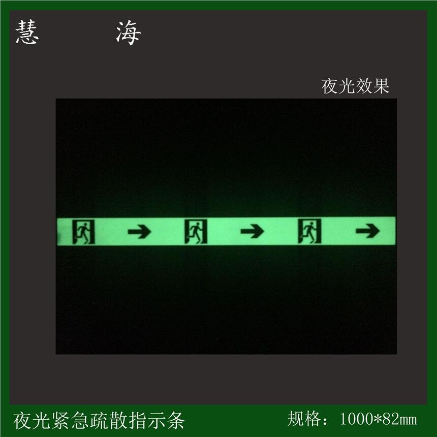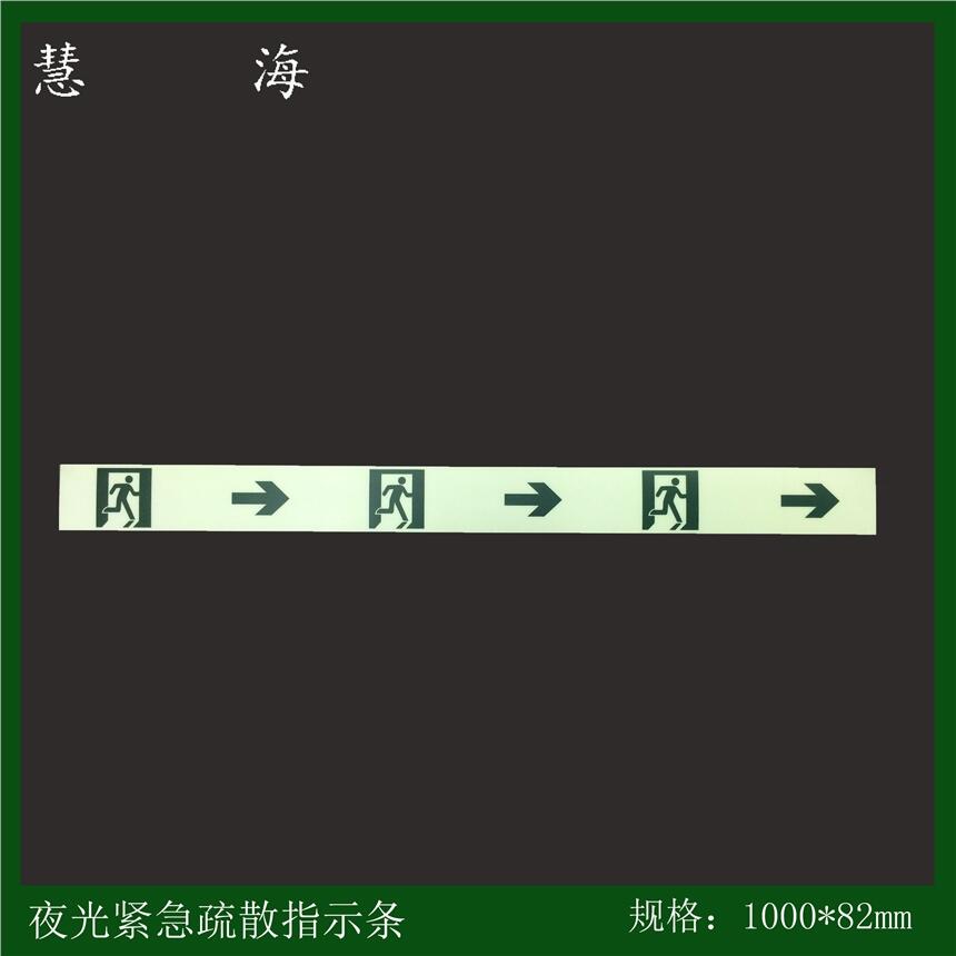 夜光疏散指示条:障碍物指示条,消防门套 吸光快,亮度高,发光时间长。可以无限次的循环使用。只要有人肉眼可以感觉到的光线都可以。夜光标志目前普遍的分为PVC,铝板材质。也有特殊的要求需要基材为不锈钢制。这种产品目前广泛的应用于公共消防安全建设中。具有良好的黑暗中导示功能。无需任何电源,能够自身发光长达12小时以上,而且这种功能是无限次循环。产品特点1, 吸光快,黑暗处发光能力强,经过短时间吸收可见光后可在暗处发光,起到疏散指示作用2, 激发光要求低,阳光、低瓦数普通照明,均可做为激发条件3, 吸光速度快,发光延续时间长,通常只需5-10分钟可持续在暗处发光10小时以上,在消防突发事故中起到信息指示逃生作用4, 安装便捷,可在地面,墙面,天花板上轻松安装,无需布线等繁杂工序5, 节能,吸光发光过程无需任何电源使用寿命长,吸收、发光无数次循环,发光亮度15年内依然能达到消防疏散标准应用于墙面安装1,发光铝板导向指示标志、紧急疏散标志,消防器材标志,禁止警告指令标志2,发光PVC或有机玻璃导向指示标志,紧急疏散标志,消防器材标志