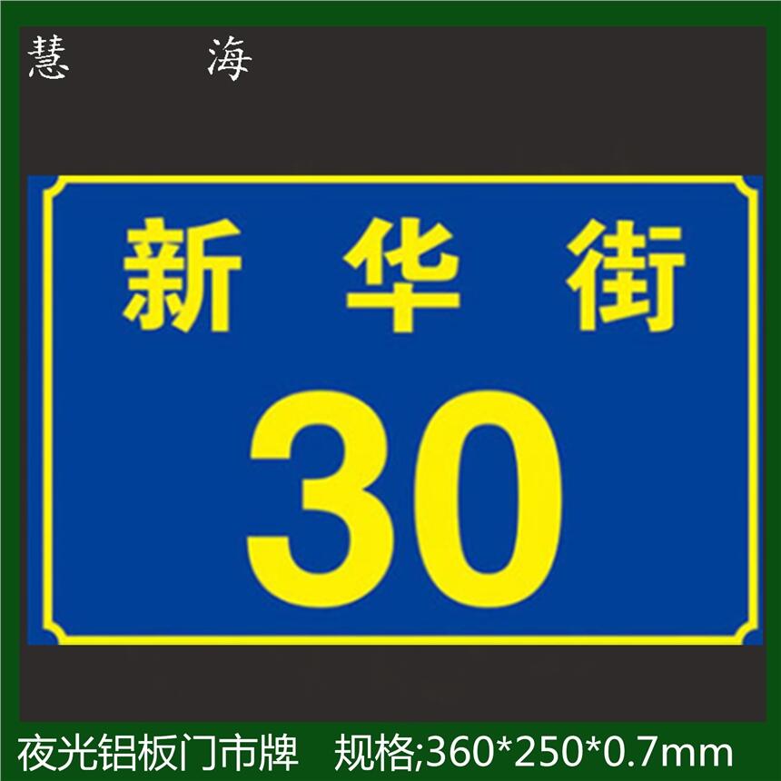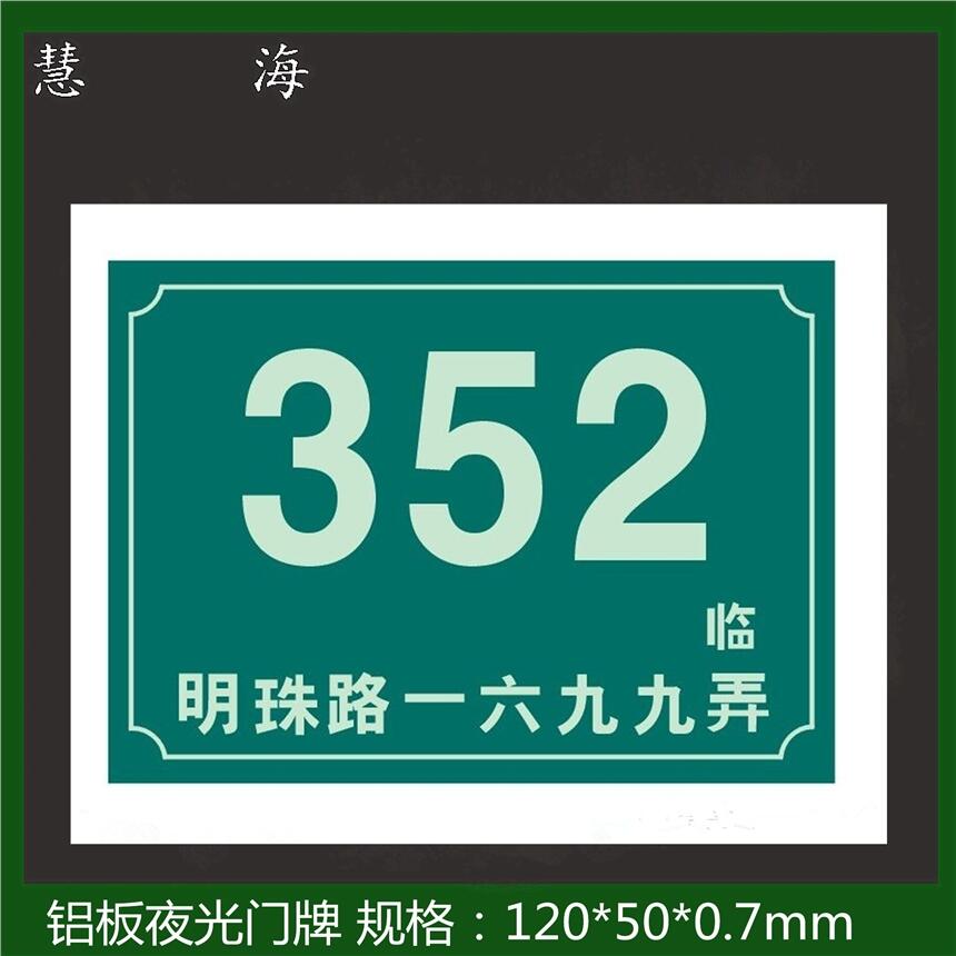 丝印夜光门牌 户室牌荧光铝板标志 长余辉地名说明牌,其技术特点:不需能源,只在白天吸蓄阳光和日光,至夜间自行发光长达12小时,只要不受损坏,持续性发光