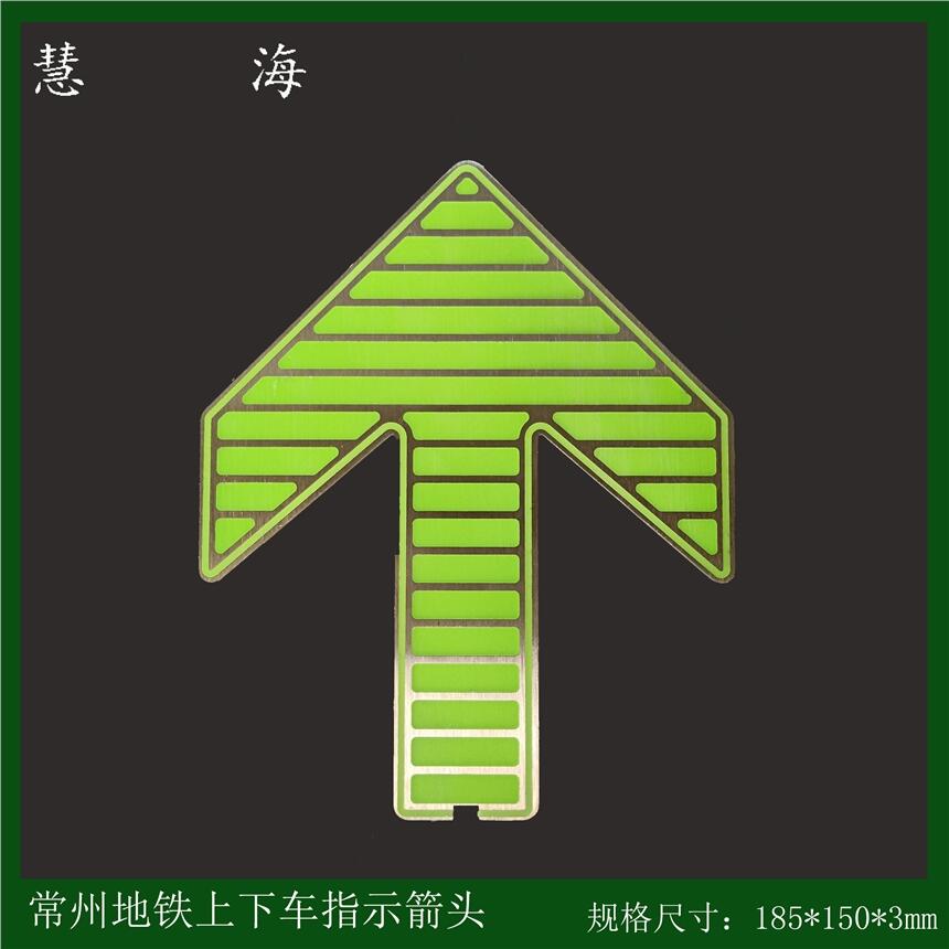 产品关键词:夜光不锈钢箭头,地铁箭头,地铁夜光不锈钢箭头,地铁导向标识。地铁屏蔽门前夜光不锈钢箭头,是利用304不锈钢板材经过腐蚀、雕刻、浇筑工艺结合夜光填充、抛光打磨等一系列手段生产出来的产品。此产品发光亮度高,余晖时间长。可以无限次循环使用。夜光不锈钢箭头,地铁箭头,地铁夜光不锈钢箭头,地铁导向标识