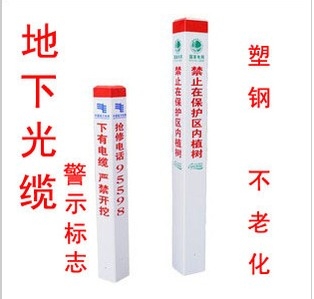 供应地埋式电力电缆标志桩PVC塑钢标志桩厂家。电力光缆PVC塑钢标志桩,中石油燃气管道警示桩,PVC地埋警示桩,光缆警示桩,电力警示桩,燃气管道警示桩,自来水标志桩,详细信息 PVC地埋式警示桩,光缆标志桩,燃气管道警示桩,自来水标志桩,PVC地埋式警示桩,玻璃钢标志桩,光缆警示桩,燃气警示桩, 玻璃钢标志桩,地埋式标志桩,光缆警示桩,塑钢标志桩,光缆标志桩,地埋式路径标志桩,燃气警示桩, PVC路径标志桩,地埋式标志桩,电力标志桩,自来水警示桩,燃气警示桩,电力塑钢标志桩 电信路径警示桩 PVC路径标志桩,地埋式塑钢电力标志桩PVC电信电缆警示桩, 电缆路径标志桩采用高分子复合材料配以高强度玻璃纤维经高温压制而成。具有强度高,重量轻,耐腐蚀,抗冲击,不龟裂,不变色,使用寿命长等特点。产品无二次回收价值,因此具有防盗功能。安装简便,是水泥警示桩的有效换代产品。用途:主要用于电缆线路在绿化带,农田,灌木丛,郊区等设置电缆路径标志块不明显的地方。可单独用于一根电缆的走向标示,也可用于几根电缆并行的电缆通道走向标志。直线段宜每间隔100米设置1座,一般设置在各类电缆井处。直线段较长时,在两座工作井之间加设标志桩。 ,为进一步规范天然气管线标志桩建设,燃气公司从8月中旬开始,加快速度对原有天然气管线标志桩进行整改及对新建天然气管线标志桩进行埋设,一个多月时间,完成了90%的工程量,共埋设了柱状标志桩1087只,人行道上的块状标志桩正在敷设中。 电力塑钢标志桩 电信路径警示桩 PVC路径标志桩,地埋式塑钢电力标志桩PVC电信电缆警示桩, 电缆路径标志桩采用高分子复合材料配以高强度玻璃纤维经高温压制而成。具有强度高,重量轻,耐腐蚀,抗冲击,不龟裂,不变色,使用寿命长等特点。产品无二次回收价值,因此具有防盗功能。安装简便,是水泥警示桩的有效换代产品