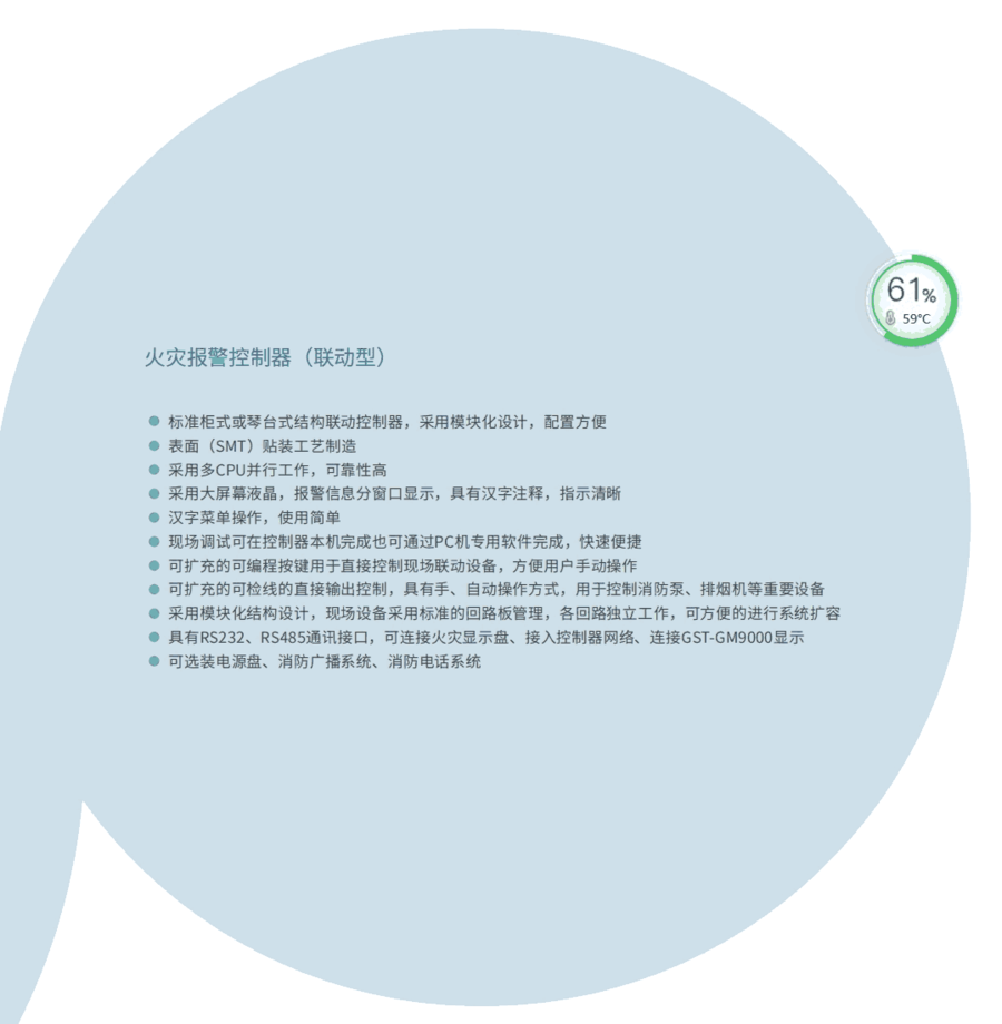 2.进一步加强了控制器的消防联动控制功能,可配置多块手动消防启动盘,完成对总线制外控设备的手动控制,并可配置多块14路多线制控制盘,完成对消防控制系统中重要设备的控制;