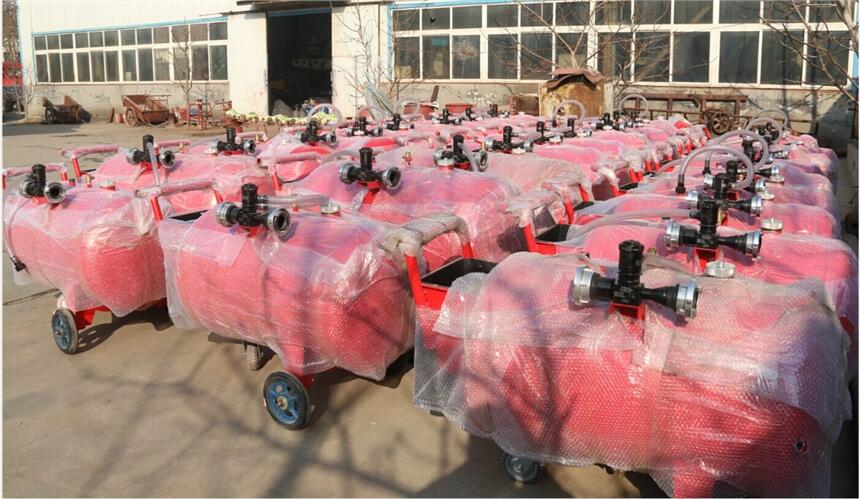 泡沫灭火系统装置主要由泡沫液储罐、喷枪、比例混合器、水带、及推车底盘等构成,它是一种新型环保高效性泡沫灭火装置,其操作迅速简便、可靠性强。在火灾发生初期时,机动、灵活地推动该装置到灭火现场进行灭火。本装置可独立作为消防防卫器材,也可配合大型固定式泡沫灭火系统起辅助补救作用。移动式泡沫灭火装置工作原理 移动式泡沫灭火装置在灭火时其管线式比例混合器的两端的管牙接口与消防水带连接,并连接压力水源,当有不低于0.6MPa压力的水以很高的速度流过比例混合器的喷嘴时,由于射流质点的横向移动的扩散作用,比例混合器的室内形成真空(负压),于是泡沫液储罐内的泡沫液在大气的压力作用下通过吸液管进入混合器,与压力水混合,最终达到一定比例的混合液。当具有一定压力的混合液流到喷枪时,因为喷枪的性能会吸入一定量的空气。使泡沫混合液发泡。从而达到泡沫灭火的效果。 移动式泡沫灭火装置产品特点 价格便宜、操作使用及维修方便、喷射时间长、灭火性能高。