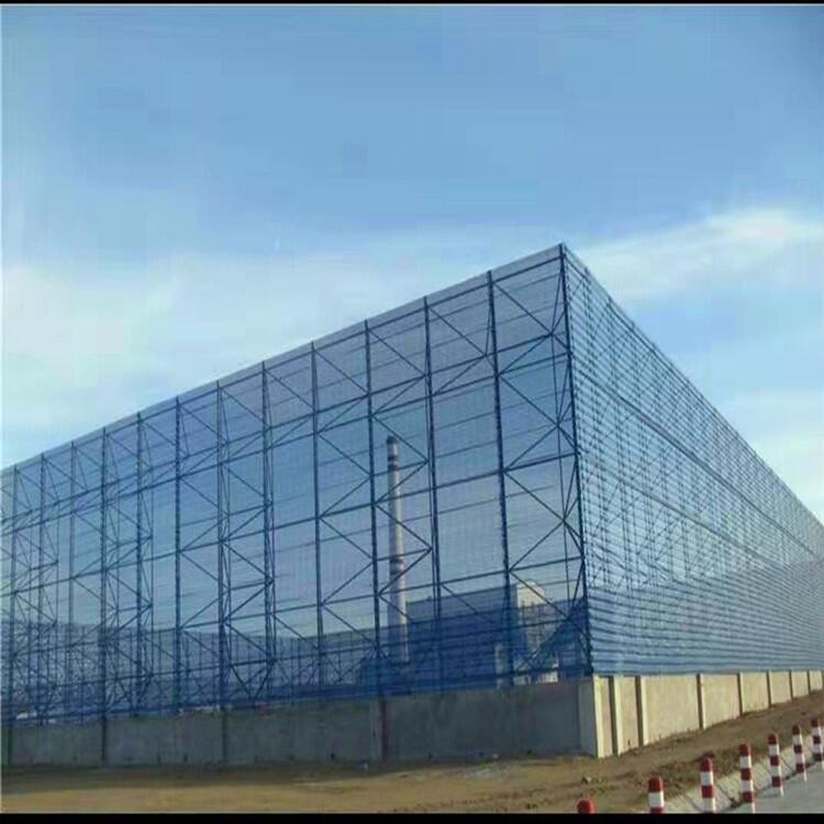 防风抑尘网墙的结构布局可以参照以下图片。框架采用工字钢,钢管或角钢制作。防风抑尘墙开孔率等参数根据不同情况略有不同。该技术不需消耗动力,既不需要运转费用。从投资的角度看,采用防风抑尘墙、防风抑尘网,能有效的防治二次扬尘,减少对大气污染,并减少了堆料损失,使用防风抑尘墙在创造经济效益的同时,也会积极地创造的社会效益和环境效益。并可使堆料场成为与蓝天相映衬的绿色环保风景线。防风抑尘墙主要应用于露天煤场、石料厂、电厂等场所做防风抑尘用。