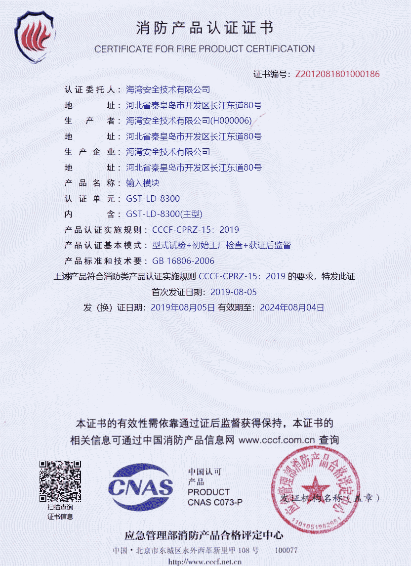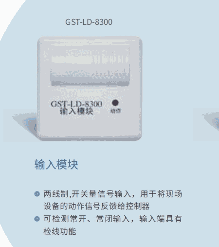 ??海湾GST-LD-8300输入模块(监视模块),用于接收消防联动设备输入的常开或常闭开关量信号,并将联动信息传回火灾报警控制器(联动型)。主要用于配接现场各种主动型设备如水流指示器、压力开关、位置开关、信号阀及能够送回开关信号的外部联动设备等。这些设备动作后,输出的动作信号可由模块通过信号二总线送入火灾报警控制器,产生报警,并可通过火灾报警控制器来联动其它相关设备动作。