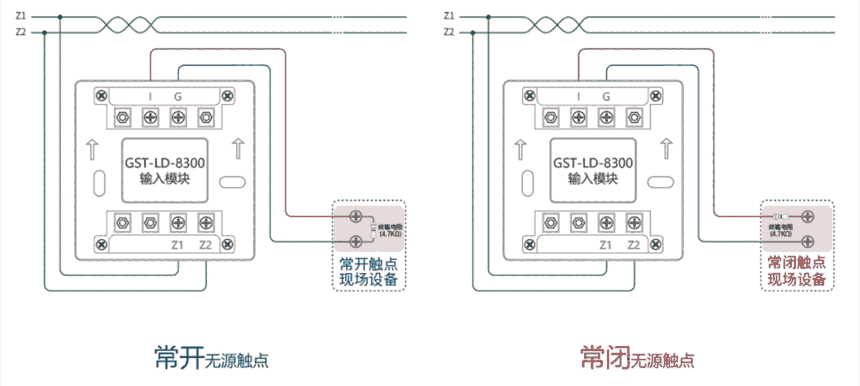 ??●输入端可现场设为常闭检线、常开检线输入,应与无源触点连接;