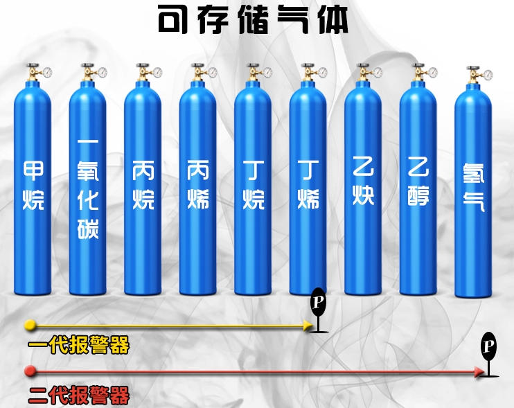 【报警器】采用专用可燃气体探测器,空气扩散采样,当达到芯片切点设定的浓度时,将自动报警。报警系统可连续自动监测室内氢气(H2)、氧气(O2)一氧化碳(CO)、甲烷(CH4)、乙烷(C2H6)、丙烷(C3H8)、丁烷(C4H10)、乙烯(C2H4)、丙烯(C3H6)、丁烯(C4H8)、乙炔(C2H2)、丙炔(C3H4)、丁炔(C4H6)、硫化氢(H2S)、磷化氢(PH3)等气体的泄露程度,在达到浓度:下限0.1(LEL)—上限0.25(LEL)时探头传感器会感应到并且发出警报,有效避免因气体泄露制造的恶性事故。