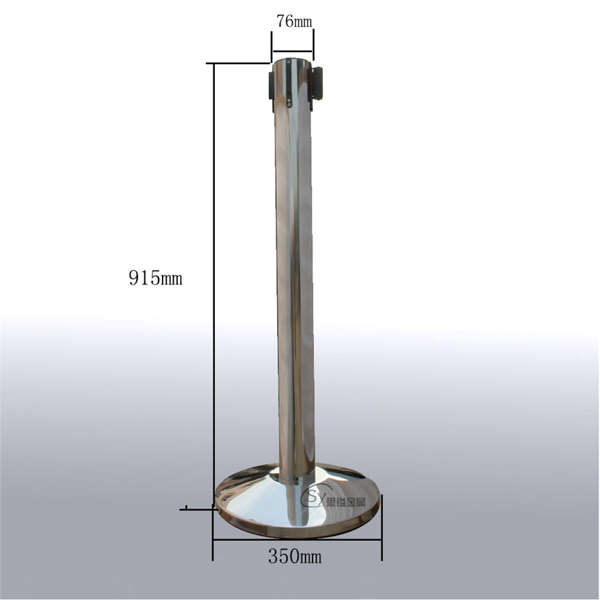 5米加长伸缩隔离带 不锈钢加粗管排队栏杆座,采用0.8加厚优质不锈钢管壁,表面磨砂或拉丝处理,搭配直径为350mm大号金属加重底座,可以稳稳的承受足5米长隔离带随意伸缩,伸缩器为思镒金属独家进口材质,最长可做到完全伸缩10米长带。隔离带有20余种颜色选择,可印字或做任何效果图。