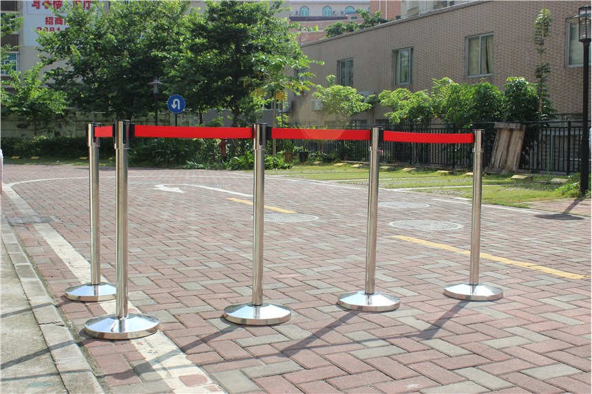 思镒金属不锈钢一米线隔离带可以做伸缩式、挂绳式、挂墙式、宽布屏风式四种。