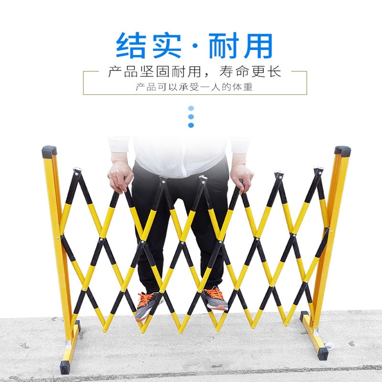 4、防锈、防腐。浸锌层、富锌磷化层、静电涂层均具有的防锈功效,绝缘伸缩护栏在恶劣环境下一般都能保证数年不生锈。