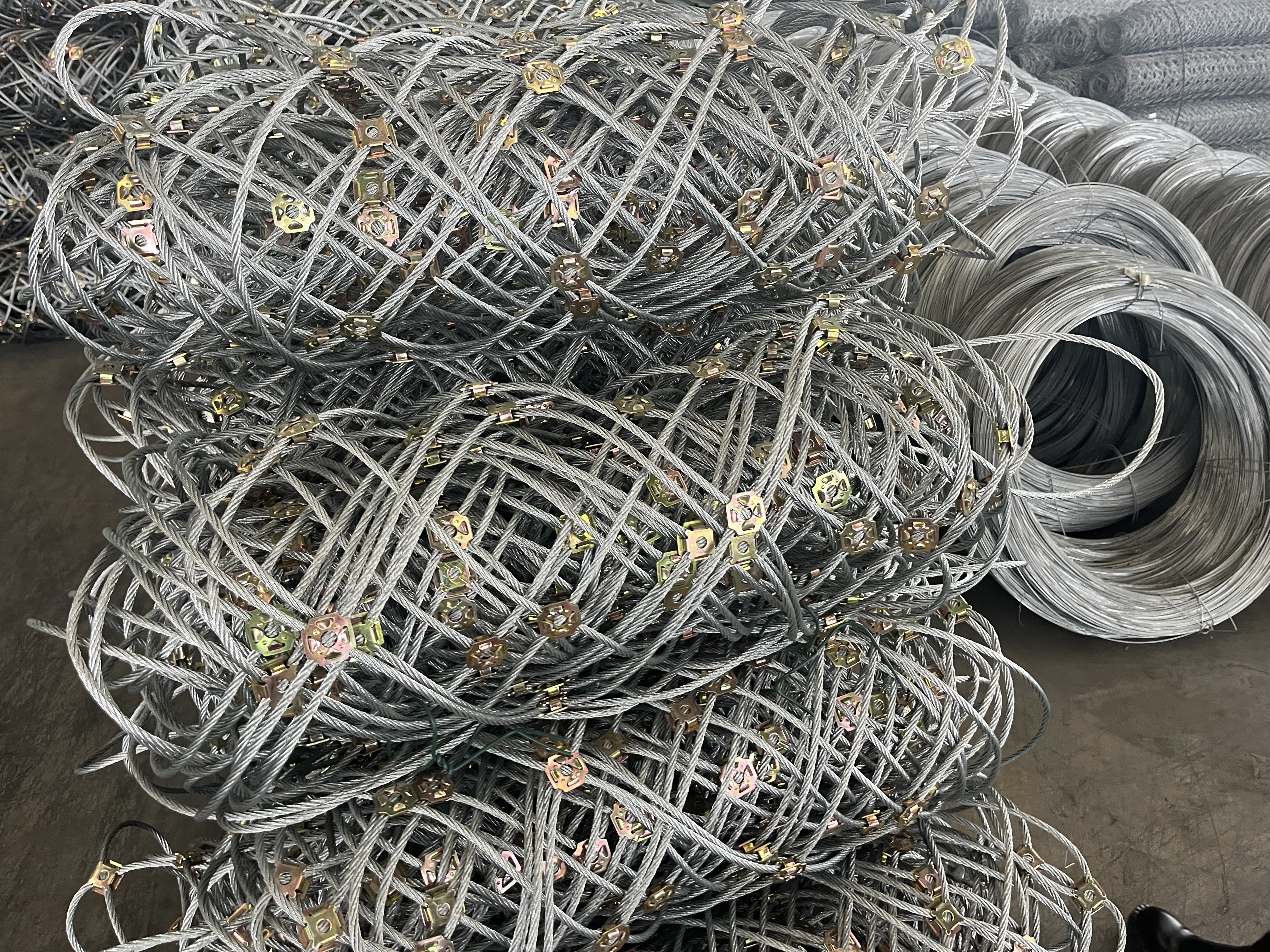 主要生产边坡防护网,主动防护网,被动防护网,柔性防护网,钢丝网,钢绳网,缆索护栏,钢绳护栏,波形护栏,石笼网,格宾网,声屏障,标志标牌,隔离栅栅栏网,草原网,各种金属丝网。