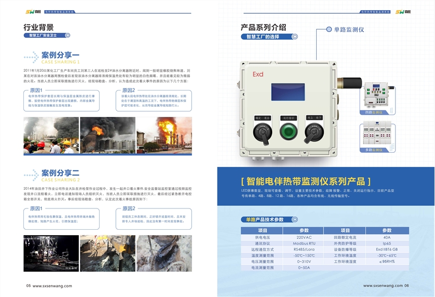 单路电伴热带智能监测仪是陕西森旺信息技术有限公司自主研发生产的专业电伴热带智能监测管理产品,该产品填补了国内外电伴热管理领域的空白。智能电伴热带监测仪能够对电伴热带的温度、电压、电流、电阻、故障位置等参数进行实时监测,并可对电伴热带进行远程控制与管理。电伴热带出现问题可能引起故障时,监测仪将自动关闭运行中的电伴热带,并将异常报警信息上传,管理人员通过监测仪能够对各类故障、问题及时发现、迅速处理,实现电伴热带智能化管理。