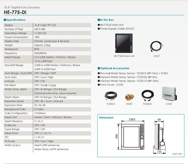 日本海马鱼探仪HE-775-Di 10.4英寸双频探鱼器