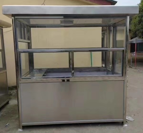 岗亭的主骨架采用45*75*1.2优质不锈钢整体焊接而成,强度高,抗风压。