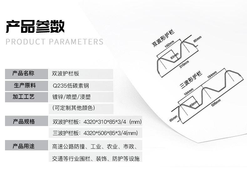 厂家定制 两波波形梁钢护栏板 乡村道路高速公路防撞钢波形梁护栏