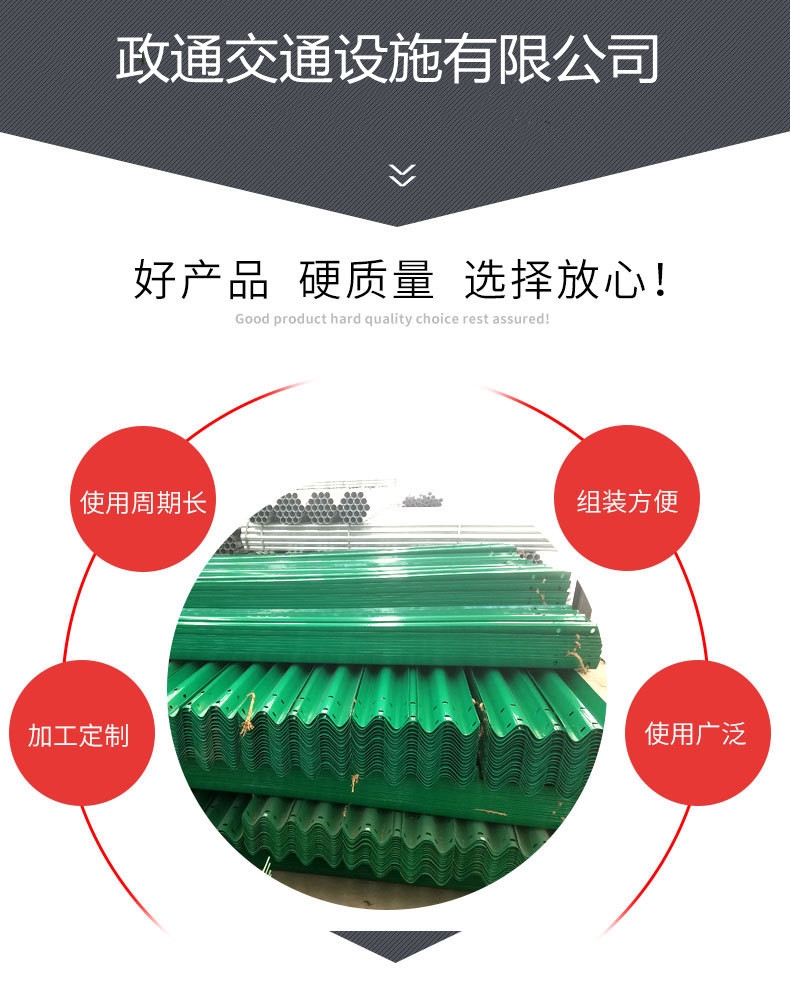 多年来,深州市政通交通设施有限公司始终把生产高质量的护栏板产品作为企业的立业之本。把提高产品质量,提升研发能力作为企业的发展方向。公司现有工程师及研发人员十多名,生产人员近百名。配有先进的测试仪器及加工设备,CAD设计软件。面对日益激烈的市场竞争,公司实施ISO9001质量管理体系和ISO14001环境管理体系,获得国际认证。公司开展全员培训,转变观念、完善提高、强化修炼、调整战略,将本土优势转化为先求生存,后求发展的核心竞争力,使公司在新的世纪里保持稳定的发展势头,抓住机遇,迎接挑战,与时俱进。我们拥有先进的管理经验,生产流程和质量控制手段,保证了为客户提供高质量的产品……