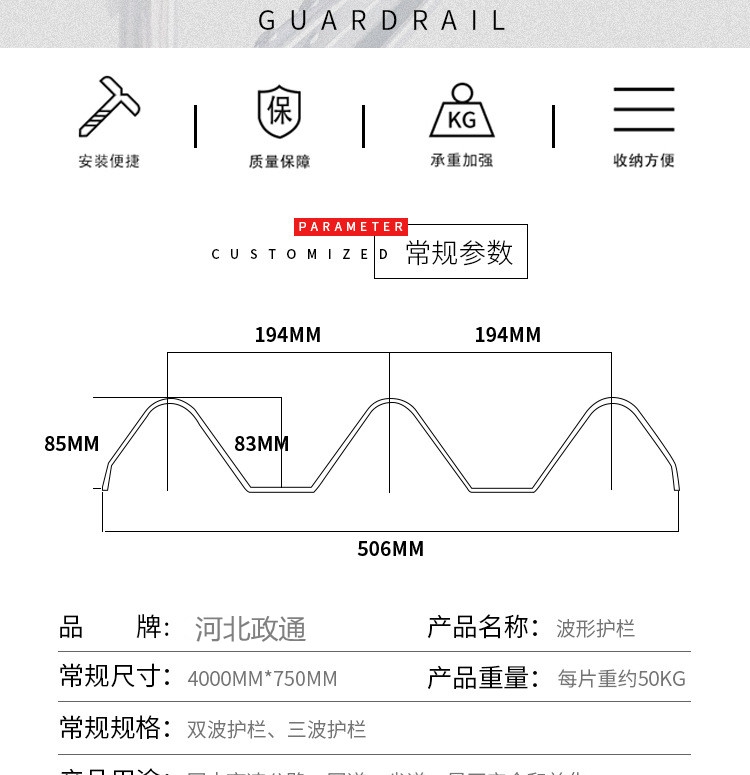 q235高速公路防撞镀锌护栏板 喷塑道路桥梁波形护栏板 二波护栏
